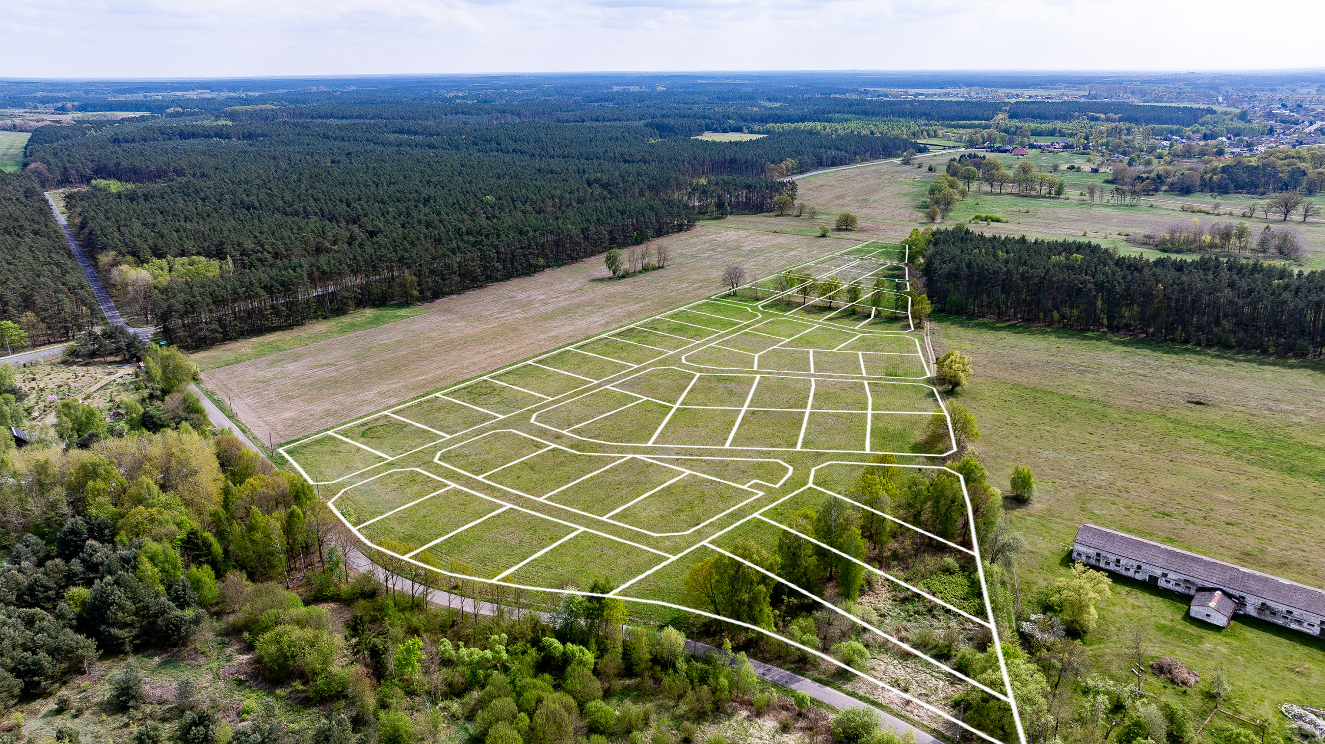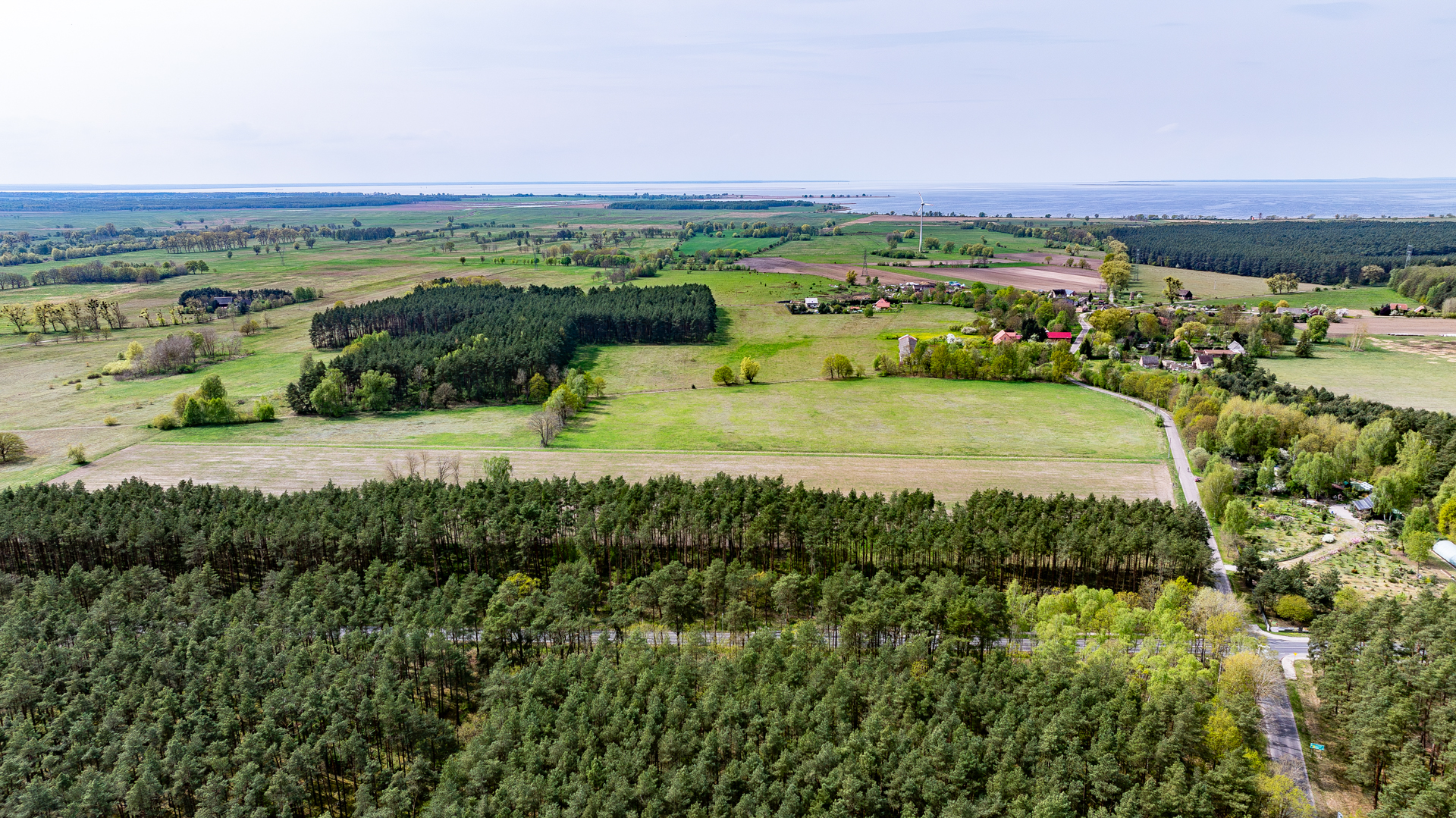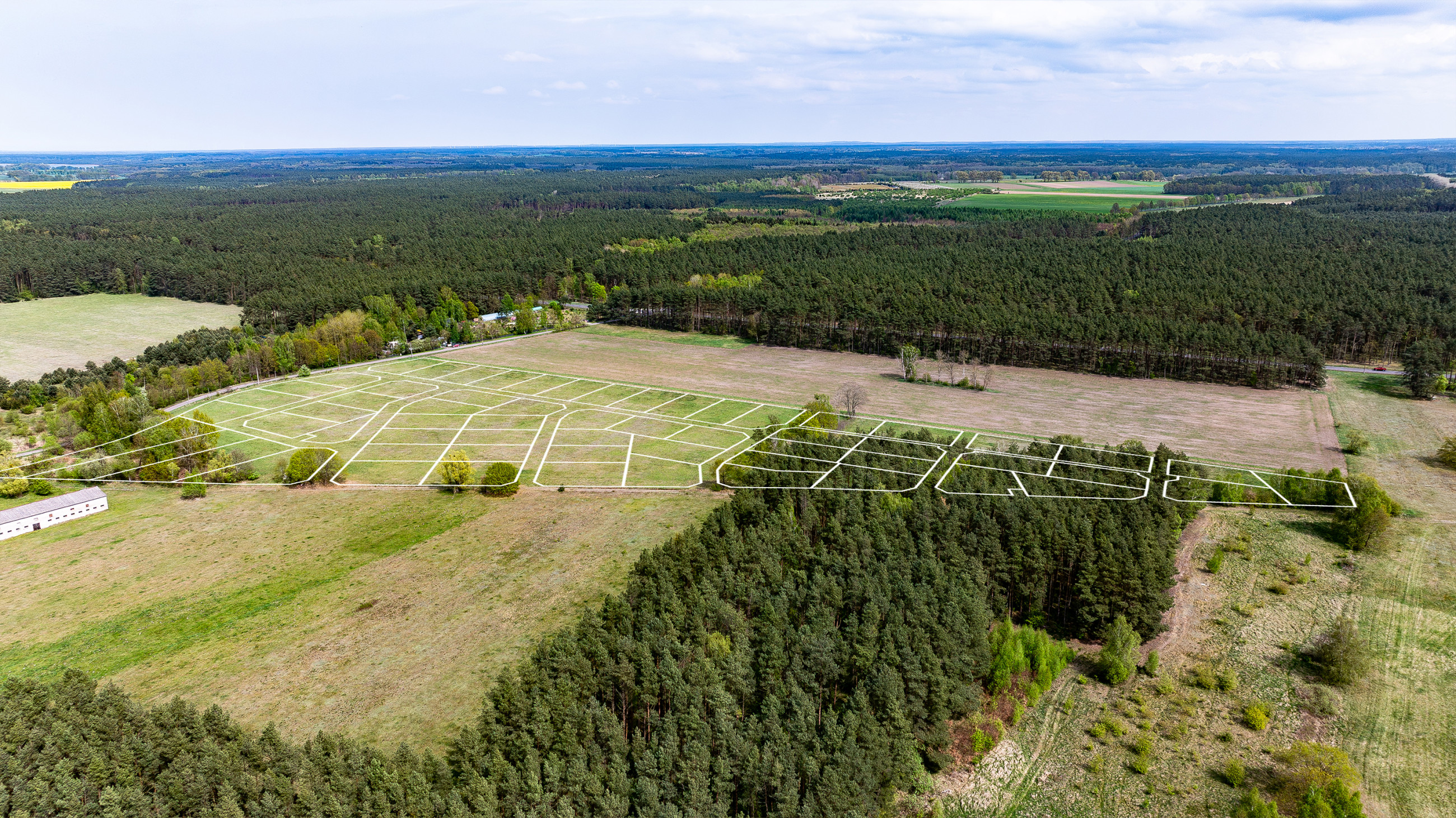 Die Grundstücke befinden sich in einer ruhigen, grünen Umgebung – sie grenzen unmittelbar an einen Wald, der zum Natura-2000-Programm gehört. Ein weiterer Vorteil ist, dass das Gelände nur 1,8 km zu Fuß vom Stettiner Haff entfernt ist, was diesen Standort noch attraktiver macht.